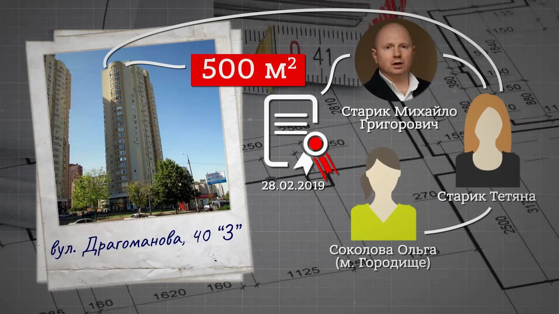 Згодом з'ясувалося, що чоловік на ім'я Михайло Старик дійсно мав право власності на майже 500 квадратних метрів нежитлових приміщень на 26 поверсі будинку на Драгоманова. Ще 56 квадратів зареєстровано на Старик Тетяну Олексіївну, ймовірно його мати.