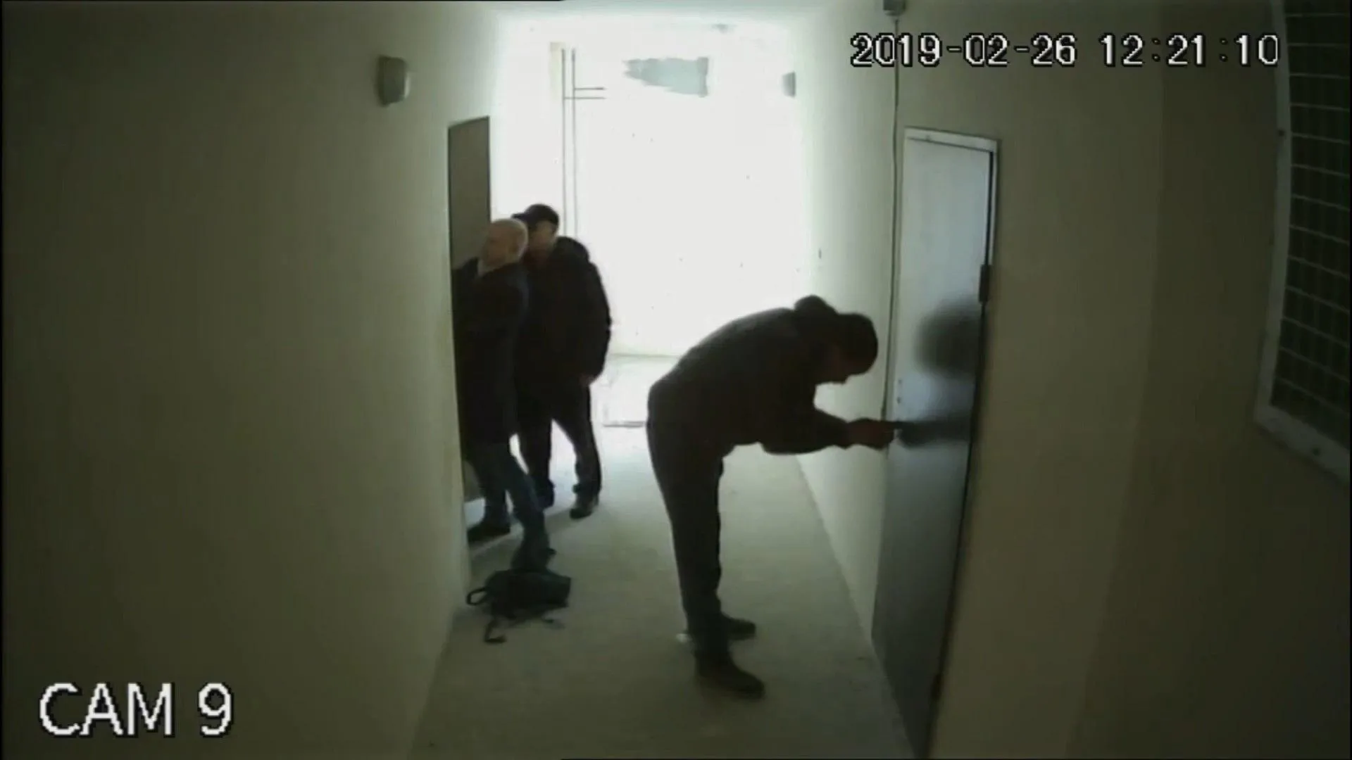 На відео з камер спостереження видно, як ті самі особи вільно заходять у під'їзд й схоже, що намагаються зламати замки у технічних приміщеннях.
