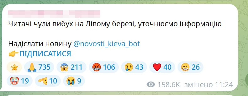 Інформація, яку поширюють Telegram-канали про нібито вибухи на лівому березі Києва, наразі не підтверджується,