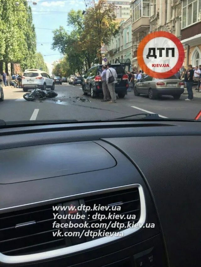 Внаслідок аварії мотоцикл загорівся. Чоловіка з важкими травмами госпіталізували до 17 лікарні міста Києва.
