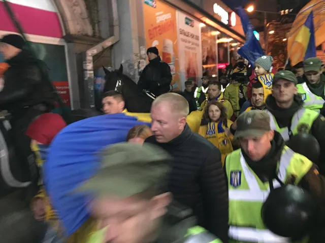 Неподалік від площі пам’ятника Шевченкові зібрались понад дві тисячі фанатів. Сформувавши колону, вони вирушили до НСК "Олімпійський".