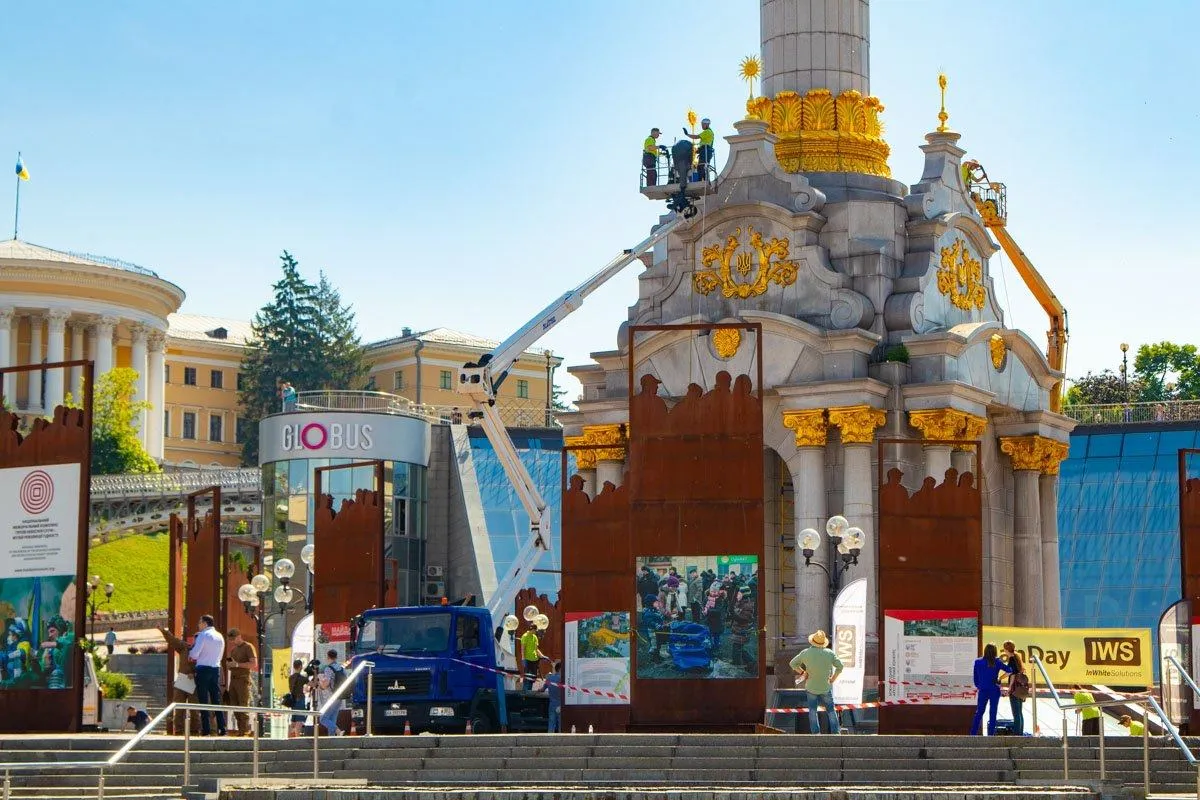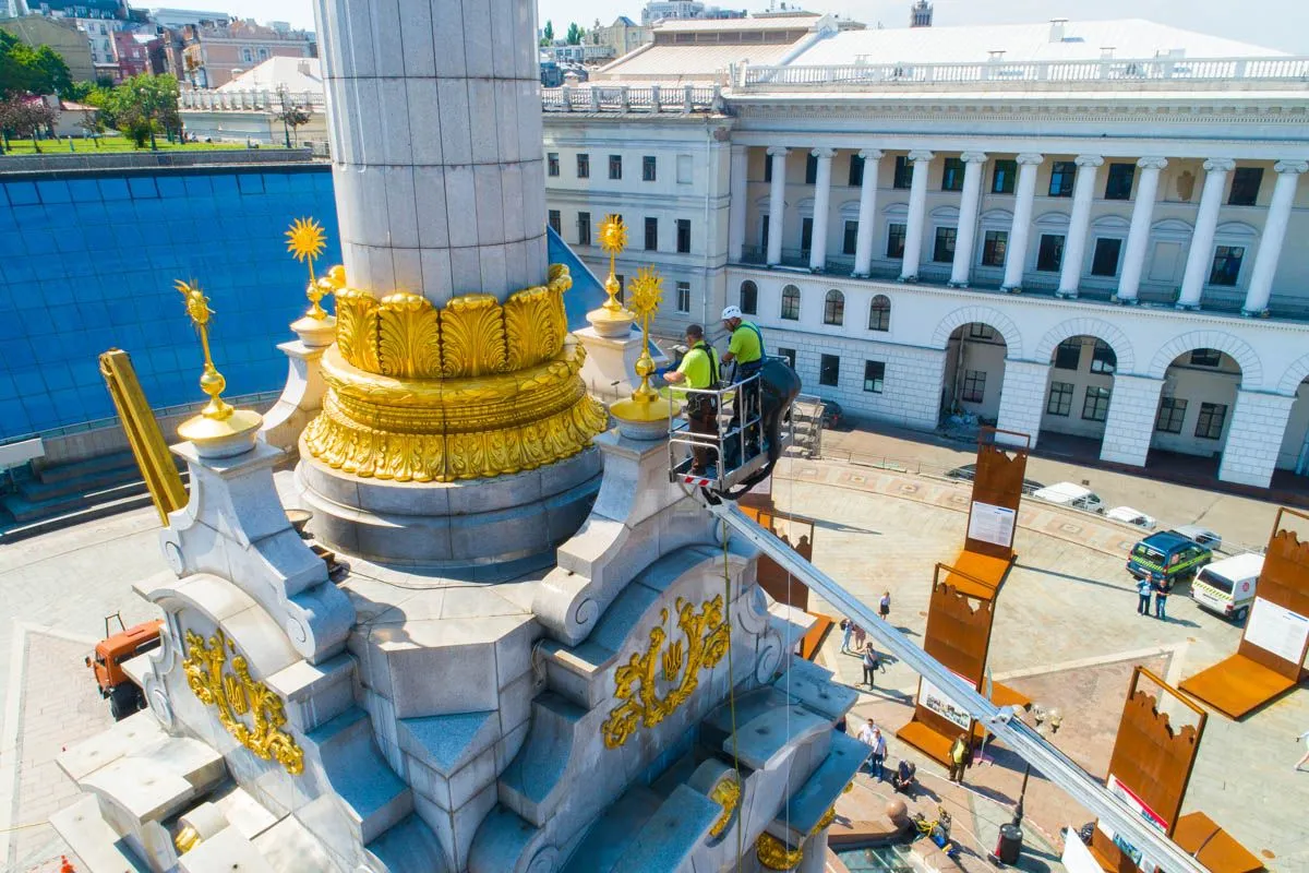 На Майдані у Києві чистять Стелу Незалежності: відео