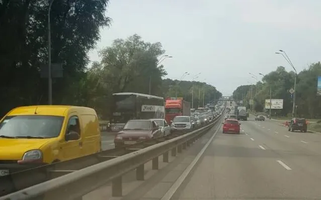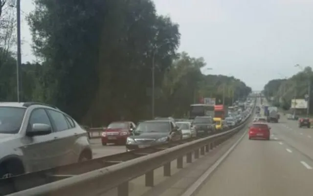 Тож на трасі від спорткомплексу "Чайка" до метро "Житомирська" утворилася довжелезна "тягучка" з автомобілів.