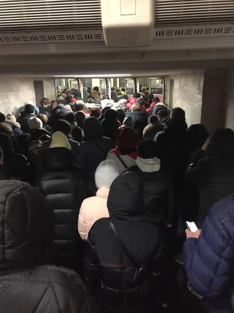 Підземка майже миттєво переповнилася та не змогла впоратись з пасажиропотоком. Майже на всіх ключових станціях метрополітену утворилася тиснява.