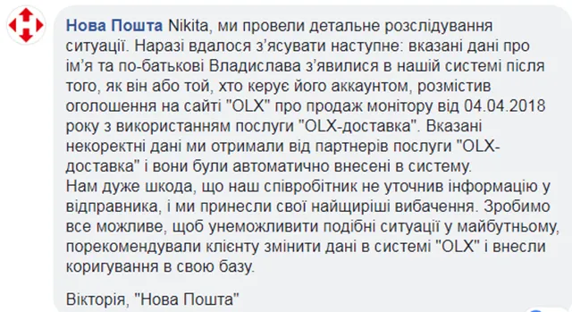 У самій же "Новій пошті" пояснили, що некоректні дані були автоматично внесені в систему, після того, як користувач сам вніс їх при розміщенні оголошення на OLX.