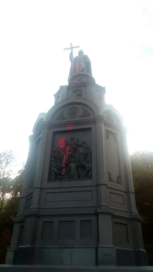 Було повідомлення. На місці відпрацювала оперативно-слідча група. Пам'ятник облили червоною фарбою, імовірно, у скляній ємності. Повідомлення внесено до журналу єдиного обліку. Вирішується питання щодо кваліфікації,