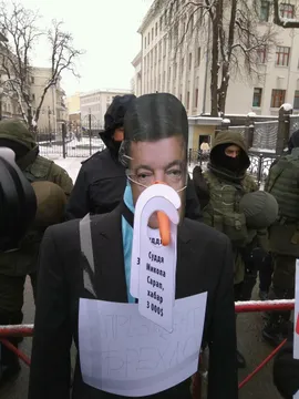 Як заявили активісти, Порошенко публічно обіцяв зняття недоторканності з суддів і можливість їх арешту, але "запропоновані ним зміни до Конституції захищають та покривають суддів-корупціонерів". Тож через це президент удостоївся такого пам’ятника.