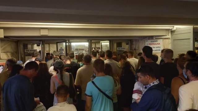 Великий натовп спостерігали на станціях метро "Театральна" та "Університетська". Десятки людей стояли у черзі до каси та турнікетів.