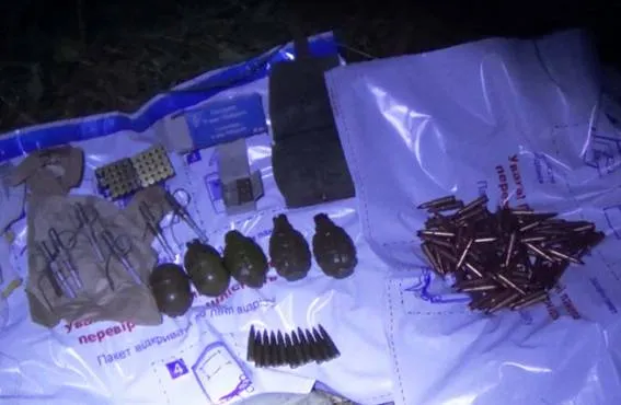 На пошуки схованки виїхала слідчо-оперативна група, експертно-криміналістична лабораторія обласного міліцейського главку та кінологічна служба. Правоохоронці ретельно обстежили ділянку лісу, де ймовірно могла знаходитись зброя, і виявили дві приховані закладки з боєприпасами. В одній зі схованок знаходився військовий речовий мішок та розгрузка, гранати, рукавички, патрони різного калібру в кількості більше 150 одиниць, предмети, схожі на гранати РГД-5 та Ф-1, запали. А в другій закладці – спальний мішок, в середині якого знаходився пристрій, зовні схожий на гранатомет РПГ, з трьома зарядами до нього та металевий ящик з патронами в кількості 700 одиниць.