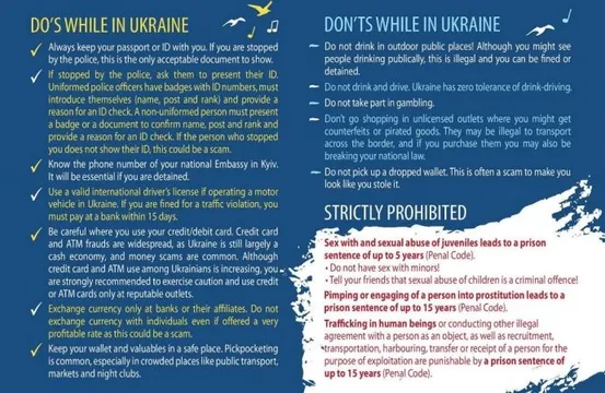 Окремо в буклеті попереджають про секс з неповнолітніми. За це іноземцям загрожує 5-річне ув'язнення. За ґрати можна потрапити і за ніч з повією.
