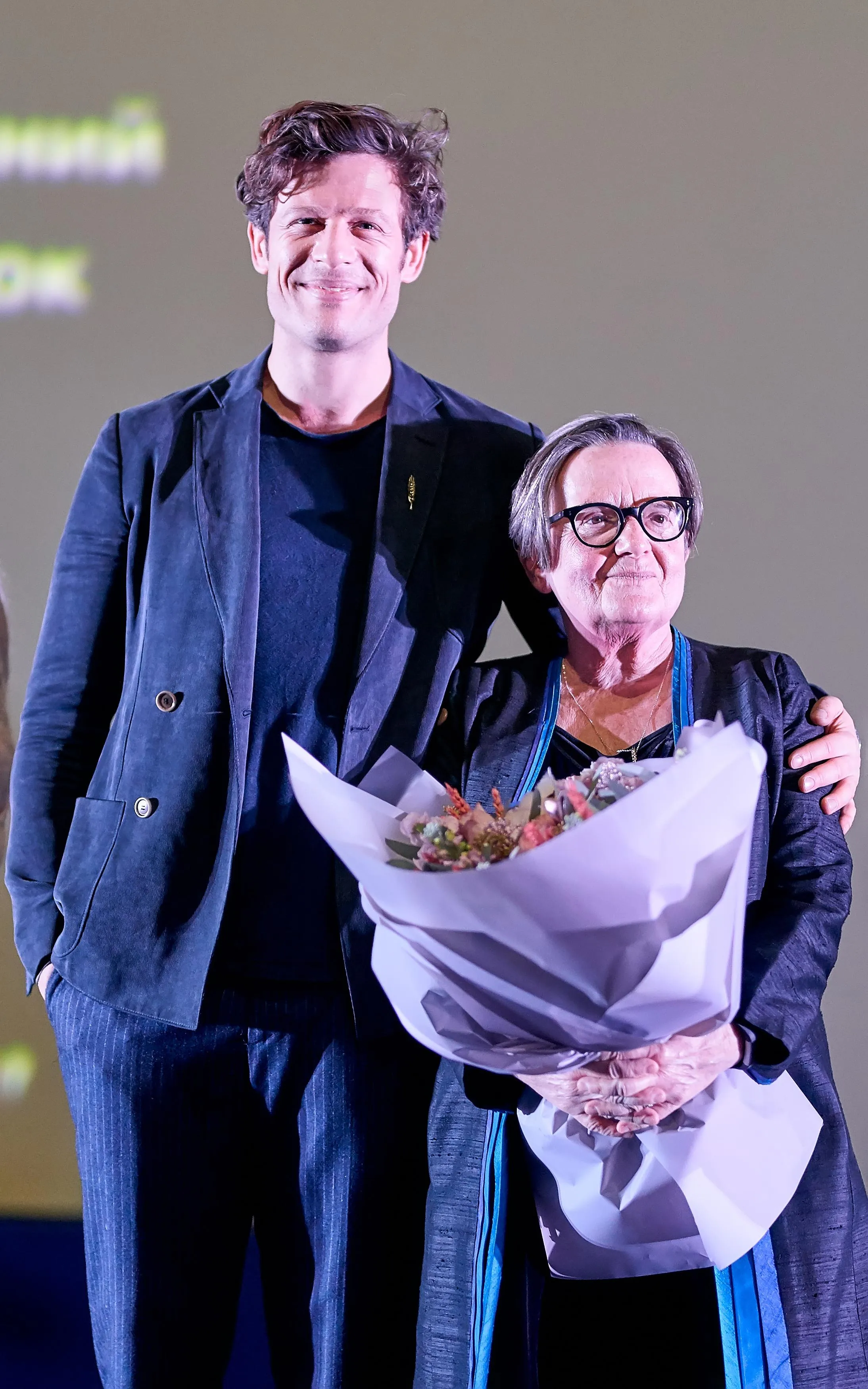 Джеймс Нортон і Аґнєшка Голланд на презентації фільму "Ціна правди" у Києві / Пресслужба