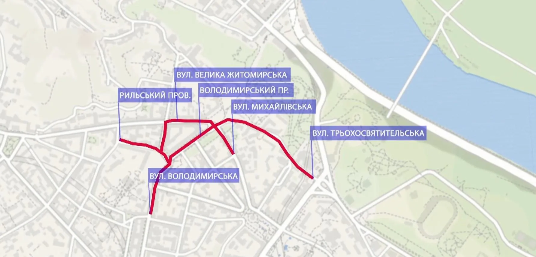 Важливо! З нагоди річниці Хрещення Русі рух транспорту буде обмежений. З 11:00 до 13:30 буде заборонений рух Володимирським проїздом на відрізку від Софійської площі до Михайлівської площі.