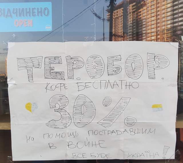 В спальных районах Киева начали работать кофейни, некоторые из них открыты допоздна. Клиентов немного, но есть. А самые ожидаемые посетители – бойцы теробороны, которых угощают бесплатно. Кроме того, работают многие супермаркеты, хлебные магазины, киоски с сигаретами и даже салоны красоты и парикмахерские (правда, в последние нужно предварительно записываться)…