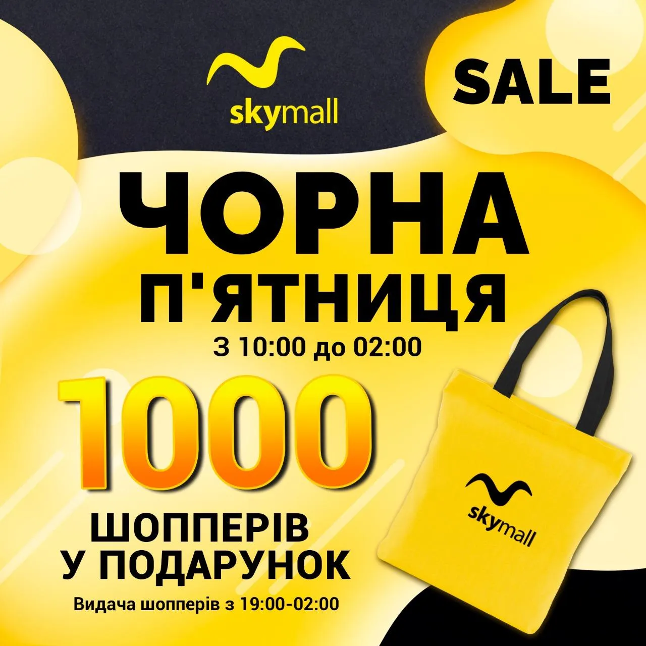 Кроме безумных скидок, для заядлых охотников на самые низкие цены ТРЦ Sky Mall проведет акцию "1000 шопперов в подарок". Условия очень простые. Нужно 26 ноября, в "Черную пятницу", прийти в ТРЦ Sky Mall и сделать выгодные покупки раньше конкурентов. Первая 1000 покупателей с чеком на сумму от 1000 гривен из любого магазина ТРЦ Sky Mall (кроме супермаркета NOVUS) получит брендированную сумку-шоппер и другие подарки. Для этого нужно заполнить анкету и показать свой чек на 1000 грн+ на промо-стойке в центральном атриуме с 19:00 до закрытия ТРЦ.