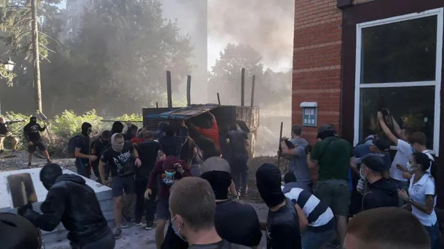 "Идет штурм незаконной застройки на Святошинском переулке, 3. Горят шины. Гражданский корпус "Азов" не намерен отступать", – говорится в сообщении пресс-службы организации.