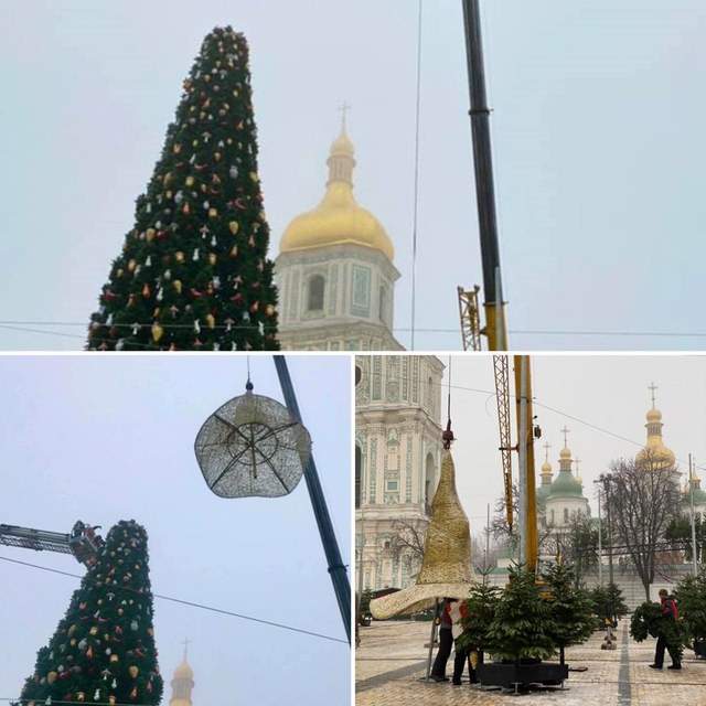 Как с главной елки Украины снимали колдовскую шляпу / Фото из соцсетей и Александра Сагана