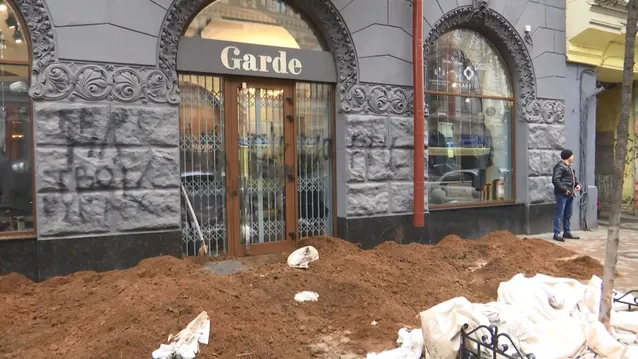 С самого утра запах навоза заставляют киевлян обходить элитный бутик в центре столицы. На стенах также надписи. При таких обстоятельствах работники не могут открыть магазин.