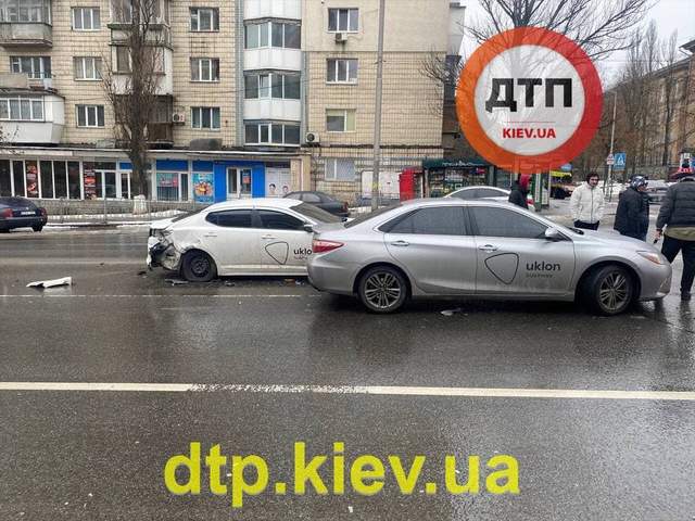Об этом ДТП сообщили в местных телеграм-каналах в 12 часов. Примерно тогда и столкнулись легковушки Toyota и Kia от Uklon Businnes.