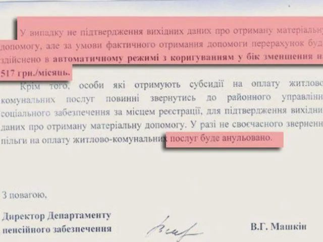 Так, согласно письму, из-за полученной помощи пенсии киевлян будут скорректированы в сторону уменьшения.