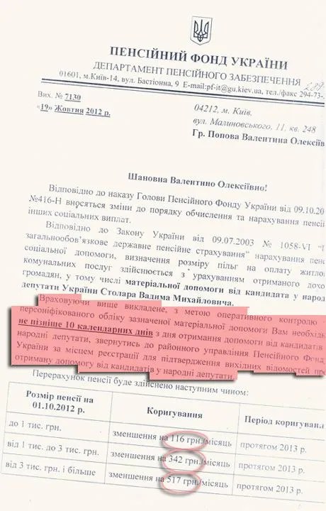Соответствующую информацию в официальных письмах обнародовал Пенсионный фонд Украины. Их прислали жителям Оболони.