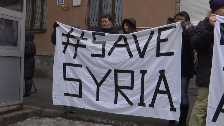 Пикетчики отметили, что трагедии Сирии и Украины похожи. И призвали украинцев больше помогать сирийским беженцам. А от ЕС требовали ужесточить санкции против России и Ирана.