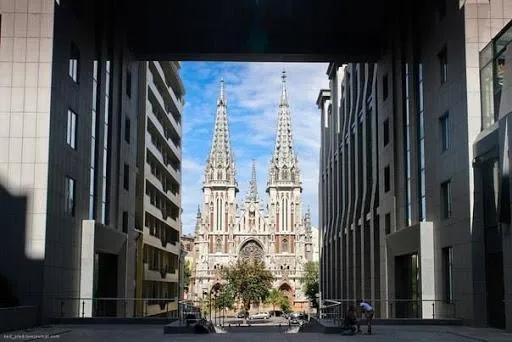 Благодаря архитектуре размещенного в центре столицы БЦ "Торонто-Киев", двор здания является очень уютным. Кроме того, с него открывается безумный по своей красоте вид на костел.