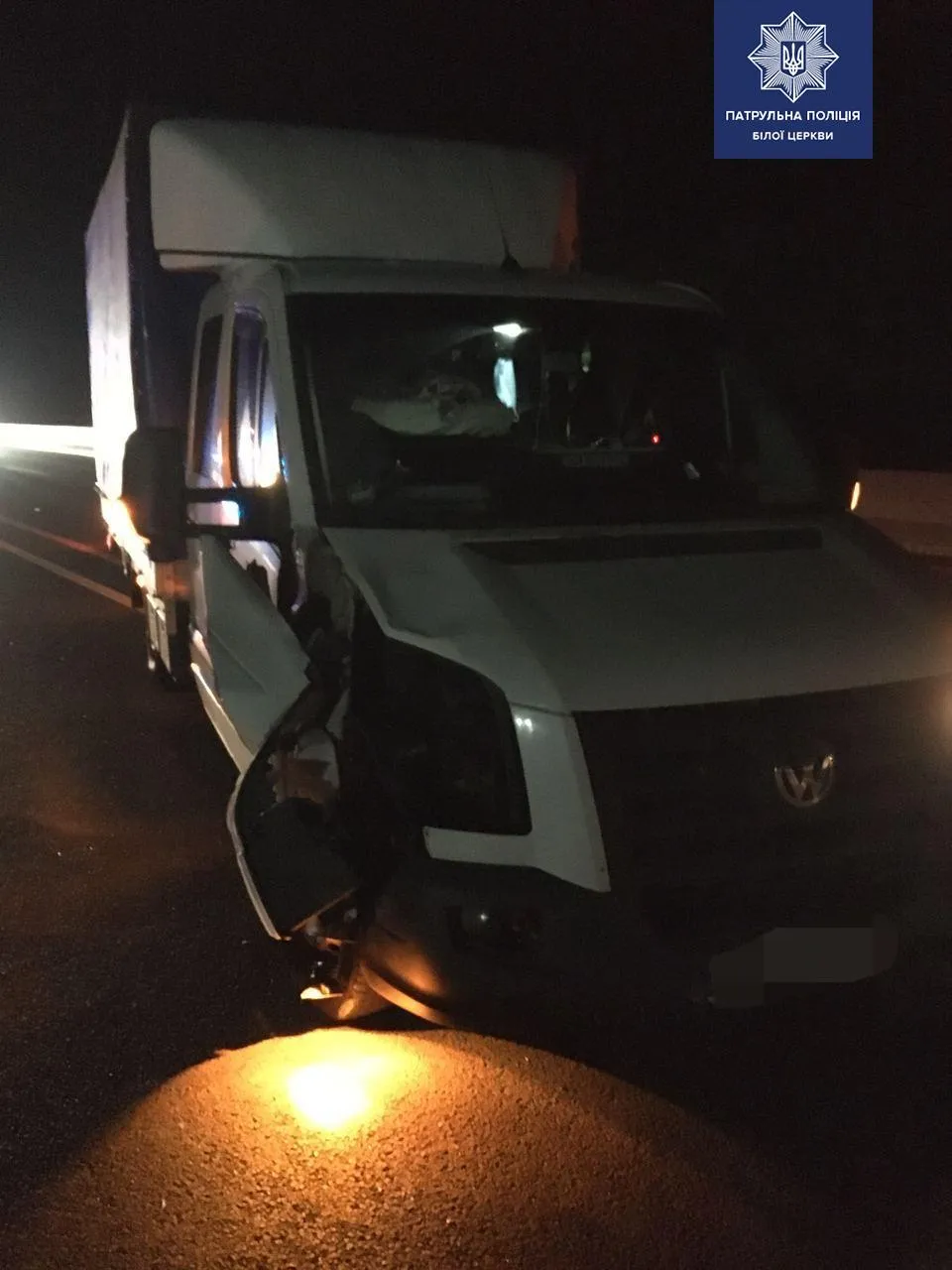 Пострадавшая от ДТП машина Volkswagen Crafter / фото: патрульная служба Белой Церкви