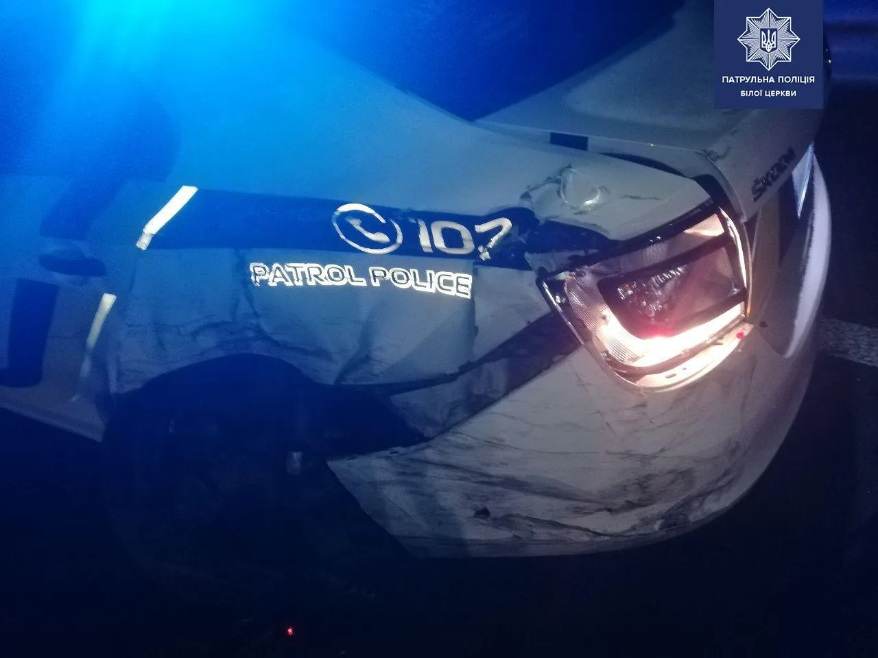 Пострадавшая в ДТП патрульная машина / фото: патрульная служба Белой Церкви