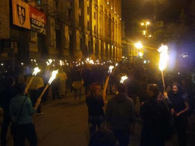 "Несколько минут назад активисты СНА собрались под зданием Киевсовета и двинулись факельным шествием в сторону Майдана. У баррикады, напротив Главпочтамта, колонну остановили. Началась драка. По предварительной информации, активисты СНА планировали идти под Верховную Раду, чтобы требовать от власти полноценной АТО на востоке ", - сообщили активисты.