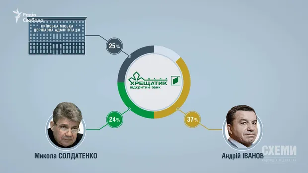 Коммунальный статус банка обусловлен тем, что четвертью его акций владел Киевский городской совет. Еще 24 процента принадлежали экс-совладельцу "Запорожстали" Николаю Солдатенко. Наибольшую же часть акций — 37 процентов — сконцентрировал бизнесмен Андрей Иванов.