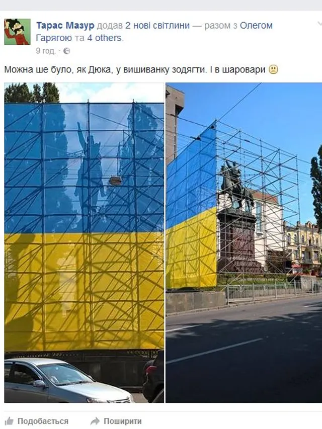 "Можно было еще, как Дюка, в вышиванку одеть. И в шаровары", – прокомментировал он снимок.