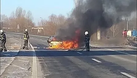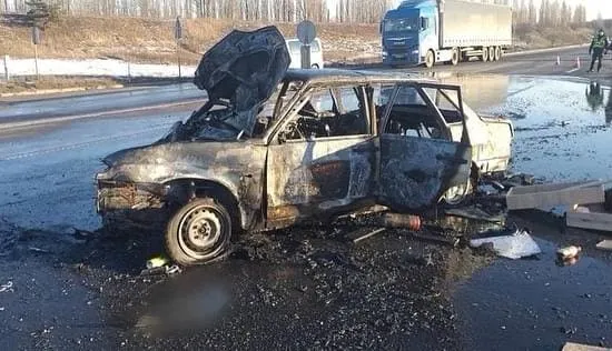 От самой машины ничего не осталось. После тушения пожара на дороге находился лишь обугленный остов легковушки.