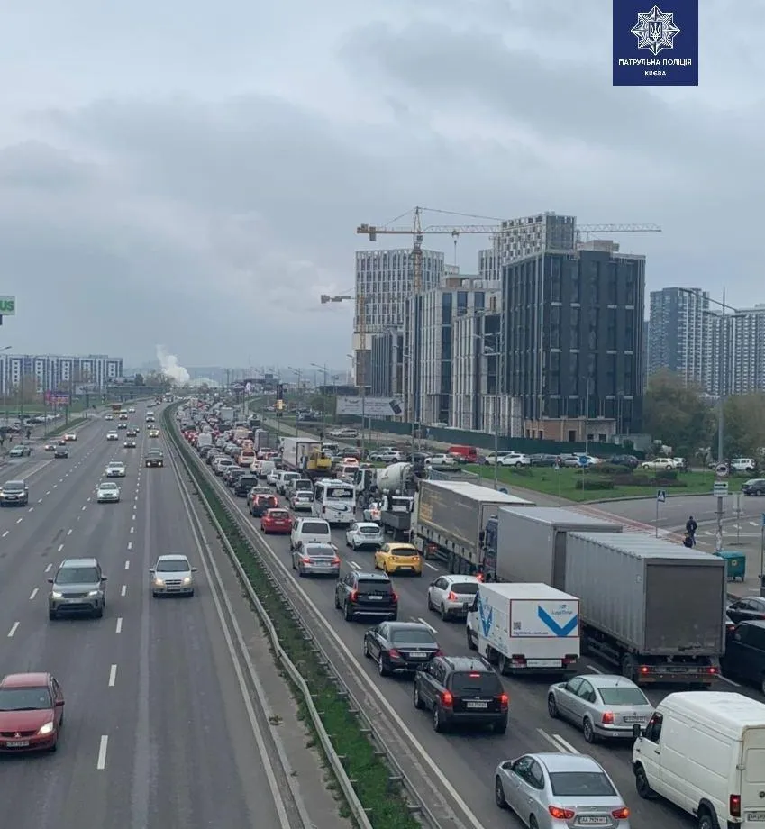 По информации Нацполиции, причиной масштабной пробки, которая образовалась на проспекте Бажана, стали ремонтные работы на Южном мосту.