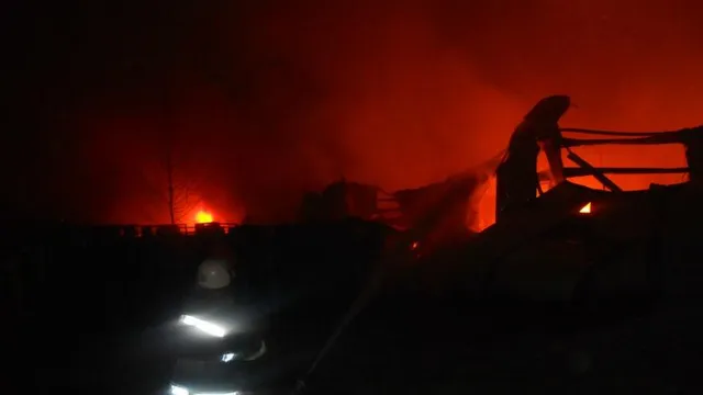 Тушение пожара продолжалось практически всю ночь, полностью ликвидировать огонь спасателям удалось только в 06:40.