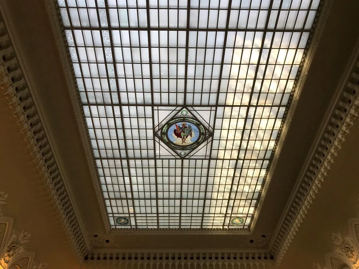 На стекляннойм потолке возвышается покровитель Киева архистратиг Михаил / фото: Петропавловка City