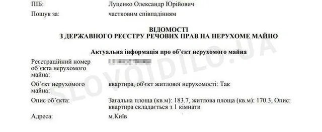 В Едином реестре указано, что 8 сентября сын Луценко купил квартиру площадью 183,7 квадратных метра. Квартира от застройщика – без отделки, ремонта и мебели, обошлась в около 6,7 миллиона гривен.