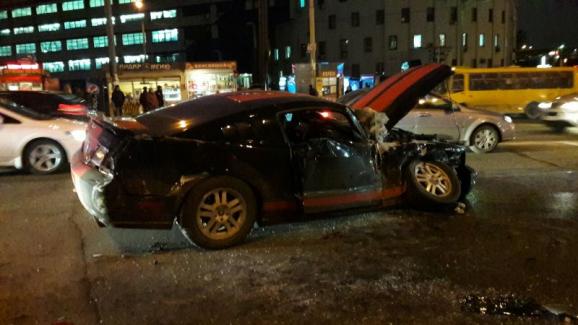 По словам полицейских, водитель Ford Mustang не справился с управлением, в результате чего его выбросило на встречную полосу.