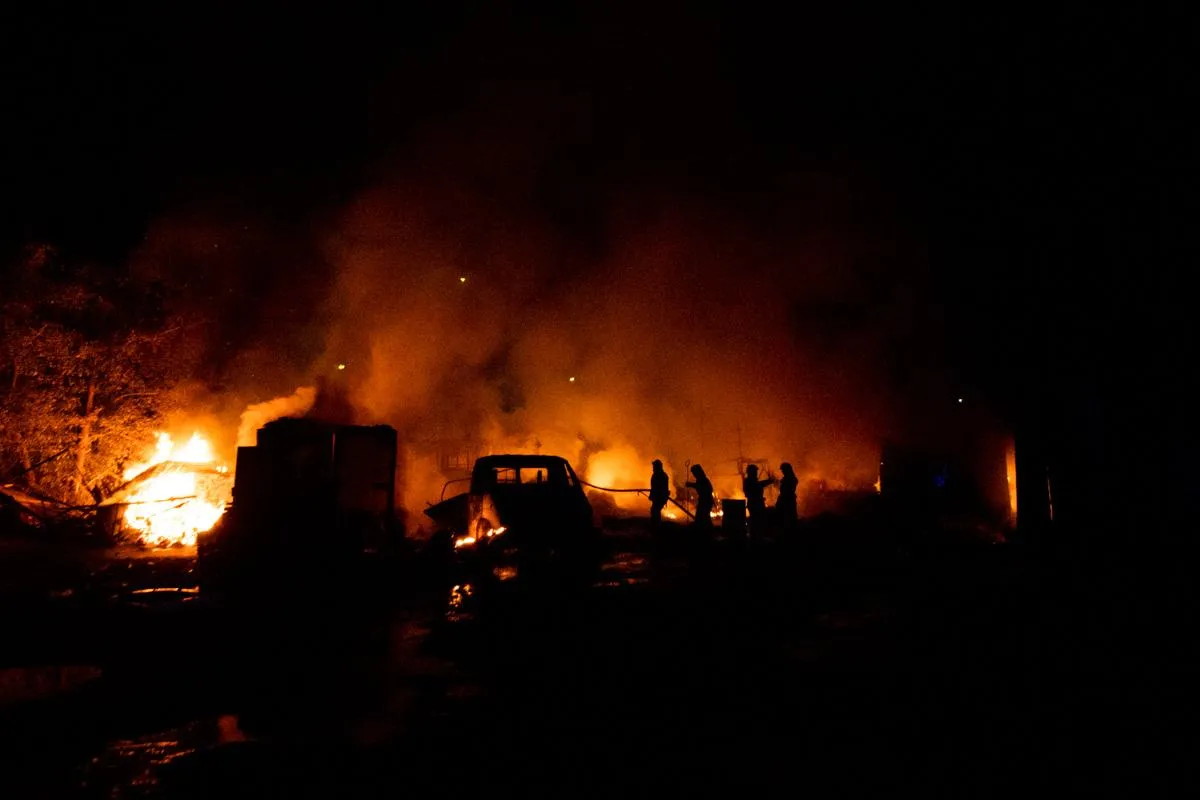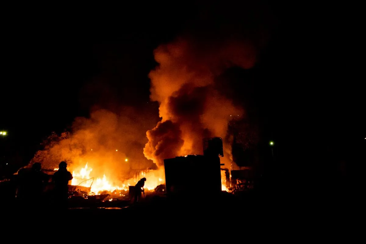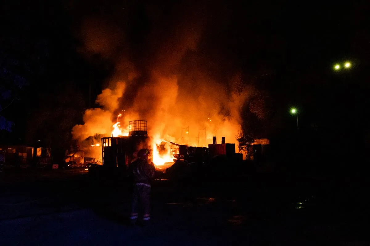 На момент, когда на место инцидента прибыли чрезвычайники, пожар уже охватил территорию, на которой располагались одноэтажные постройки. Вблизи зданий, в которых проживали работники, были припаркованы грузовые автомобили, один из которых сгорел полностью.