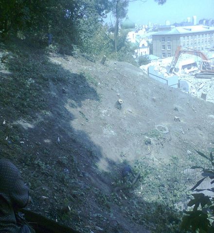 "Два дня назад я сообщил о начале разрушения Замковой горы со стороны Фроловской улицы и обратился к председателю КГГА Александра Попову с просьбой остановить уничтожение легендарной горы. Представители КГГА сообщили мне, что строительные работы не ведутся, а только вывозится мусор. Но в действительности застройщики обманули КГГА . Поскольку уже существует загражденная строительная площадка, где проводятся работы", - заявил председатель комиссии Киевсовета по вопросам культуры и туризма Александр Бригинец.