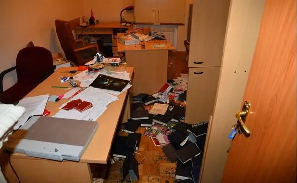 Подогнав два грузовика, неизвестные в масках начали сносить в транспорт всю оргтехнику из офиса. На вопрос сотрудников, какую организацию они представляют, они отказались отвечать.