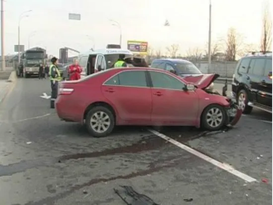 По словам свидетелей, водитель "Тойоты", который двигался в крайней правой полосе, не справился с управлением и врезался в "Мицубиси", который развернуло и бросило на другую полосу в "Хонду".