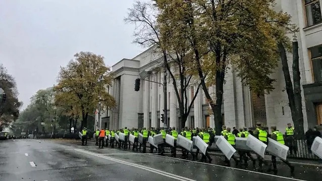 Бойцы Нацгвардии прибыли к зданию Верховной Рады еще вечером 16 октября. А утром 17 октября силовики из-за акций протеста, которые собирается провести лидер "Движения новых сил" Михеил Саакашвили и ряд других политических сил, полностью перекрыли правительственный квартал.
