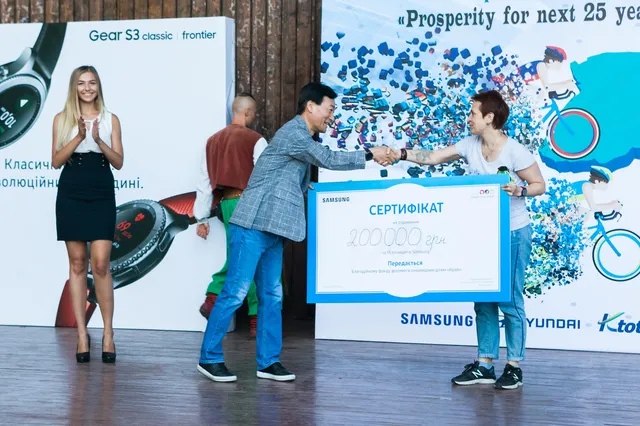 Кожен охочий мав змогу долучитись до благодійності і підтримати проект "Samsung. Надія для дітей". Для участі у заході потрібно було відвідати велозону Samsung на центральних площах Кропивницького, Миколаєва, Одеси та Києва і спробувати свої сили в міні-заїзді протягом однієї хвилини. Кожна подолана тисяча метрів на цій велозоні від "Samsung Electronics Україна" автоматично нараховувала до фонду допомоги онкохворим дітям "КРАБ" 1 000 гривень.