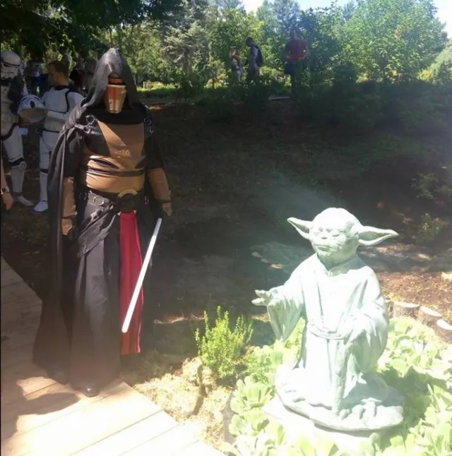 Повідомляється, що в центрі алеї встановили першу в Україні скульптуру майстра Йоди.