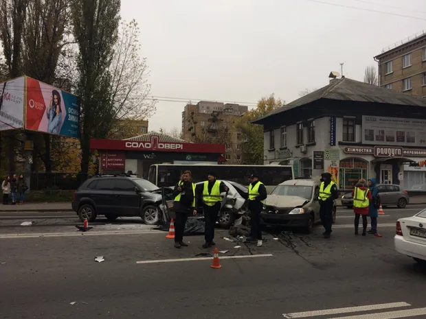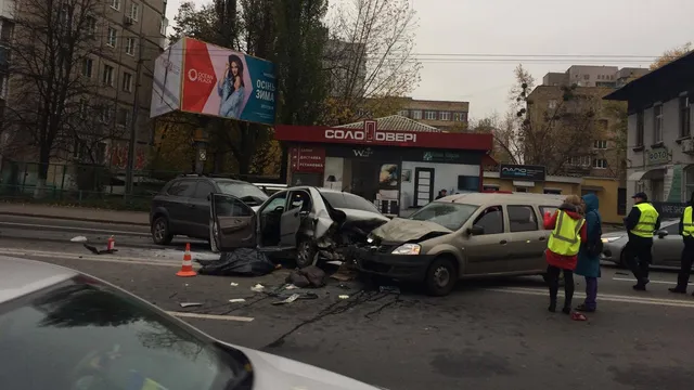 Аварія сталася близько 8:30 на вулиці Гетьмана, в районі станції метро Шулявська. На дорозі зіткнулись три машини – Hyundai Tucson, Dacia Logan та Chery QQ. У результаті останню затиснуло між двома іншими автівками. В моторошній ДТП загинув один водій іномарки.