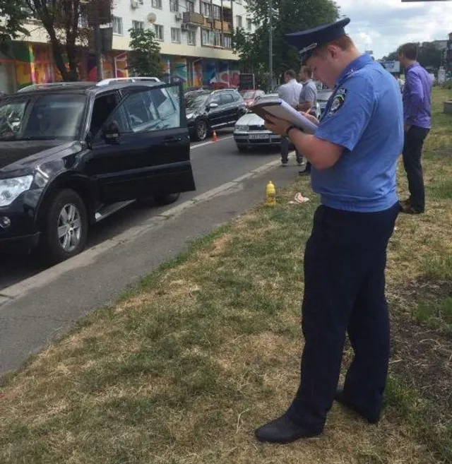 "Попередньо встановлено, що потерпілий на власній автівці рухався Печерською площею. У цей час двоє невідомих на мотоциклі кілька разів вистрілили у напрямку водія", – повідомили правоохоронці.