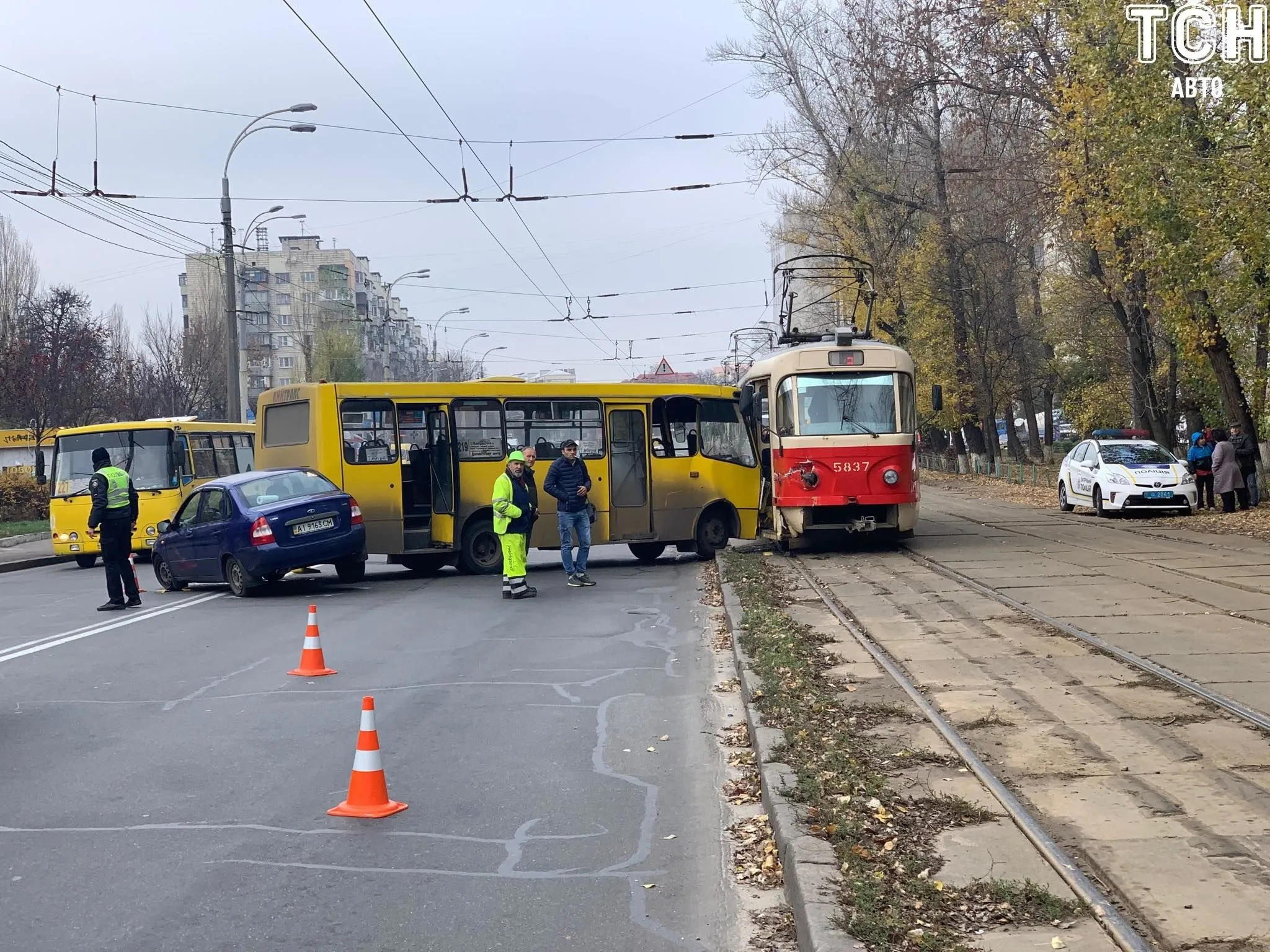 Якась транспортна вакханалія відбулася щойно на Кирилівській, 127: водій маршрутки в‘їхав у трамвай, а у маршрутку – водій Lada. Рух вулицею заблоковано, зокрема, – і рух трамваїв,