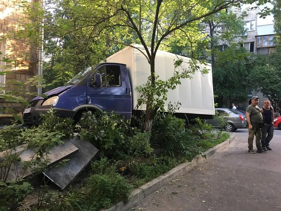 Як повідомляють очевидці, автомобіль "сів" на бетонний парапет. Також автомобіль зачепив газовий вентиль біля будинку. На місці ДТП працює аварійна служба.
