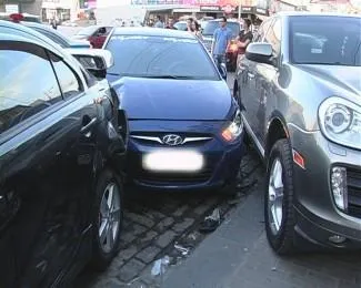 На дорозі з одностороннім рухом легковик намагався обігнати авто "ДЕУ Ланос". Як наслідок, "Хюндай" врізався у лівий борт, а потім перетнув всі смуги руху та врізався у припаркований "Міцубісі".