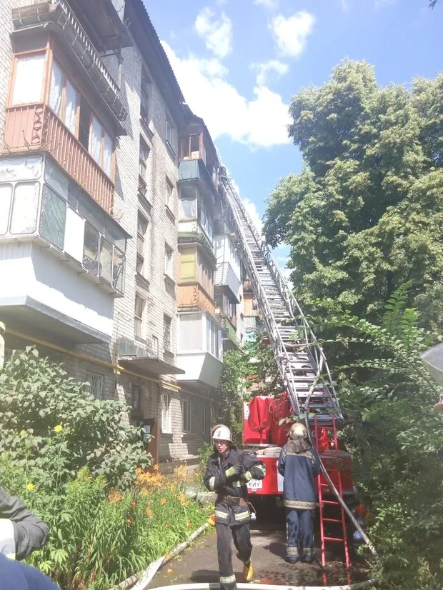 Вогонь спалахнув на одному з балконів будинку та згодом перекинувся на дах будівлі. На місце пожежі оперативно прибули рятувальники.